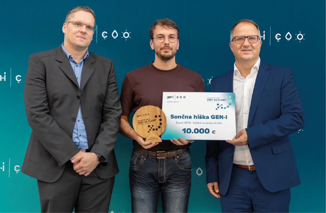 - Zavod BETA – Inštitut za razvoj družbe: Sončna hiška GEN-I (prejemnik zneska 10.000 €): Izobraževalna hiška, namenjena ozaveščanju o trajnostni rabi energije, kjer bodo obiskovalci spoznali, kako poteka proizvodnja, poraba in distribucija električne energije.