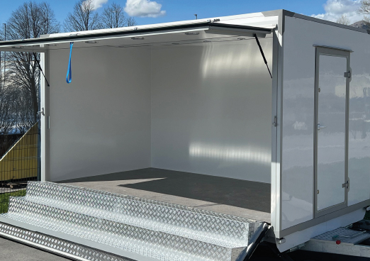 Prvi prototip je postavljen na osnovno prikolico z vgrajeno energetsko infrastrukturo. Solarni paneli na strehi omogočajo zajem sončne energije, medtem ko hibridni razsmernik in baterijski sistem zagotavljata energijo za celonočne dogodke. Testiranja so potrdila robustnost sistema, ki prenese tudi transport po neurejenih poteh, in zadostno kapaciteto za energijsko neodvisnost. Projekt je tehnično in oblikovno dovršen, saj vključuje prilagodljive rešitve za različne uporabnike in scenarije, z možnostjo nadgradnje.